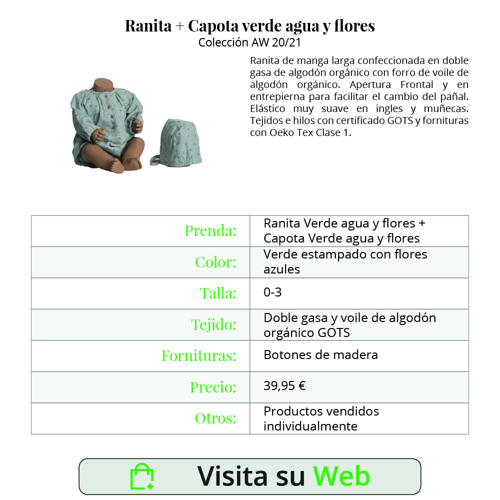 Ranita Verde agua y flores + Capota Verde agua y flores